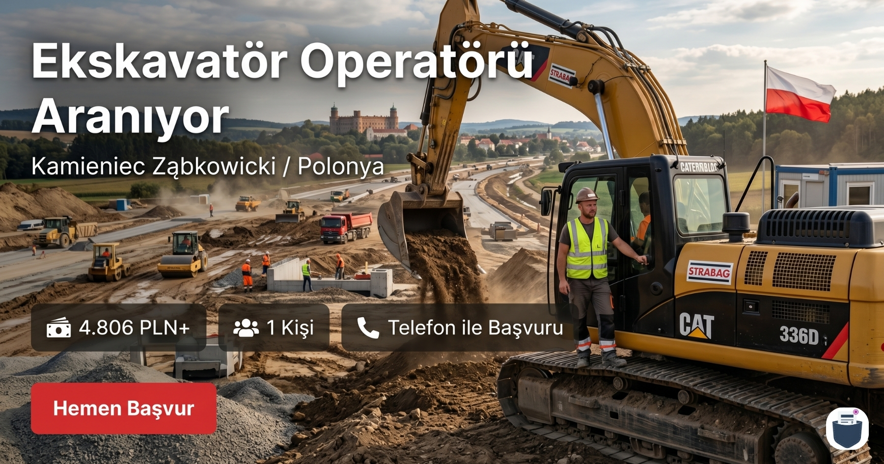 Polonya Kamieniec Ząbkowicki’de Ekskavatör Operatörü Alımı | Yol İnşaatı | Telefon ile Başvuru